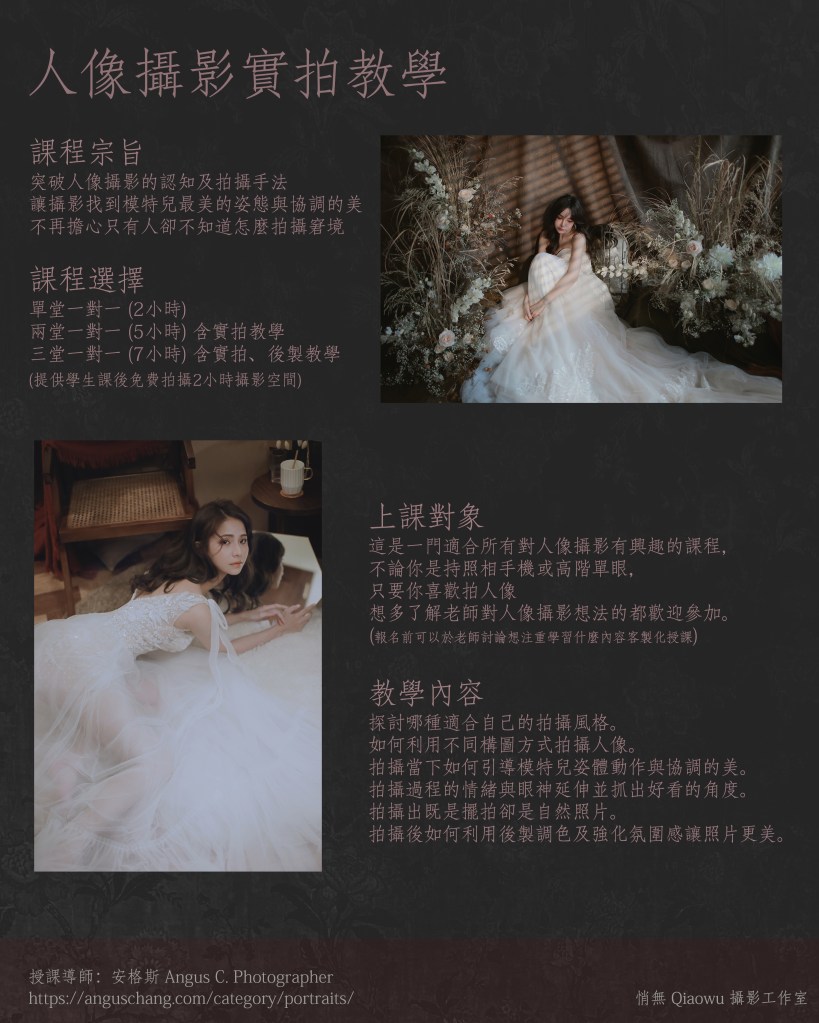 一對一人 私房人像實拍課程